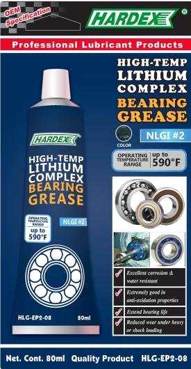 HARDEX HIGH-TEMP LITHIUM COMPLEX BEARING GREASE is developed using lithium soap and high-quality refined base oil with anti-rust and anti-oxidation characteristics. It provides superior lubrication and is durable in most weather conditions. It is suitable for general-purpose lubrication, corrosion protection, and moisture resistance.