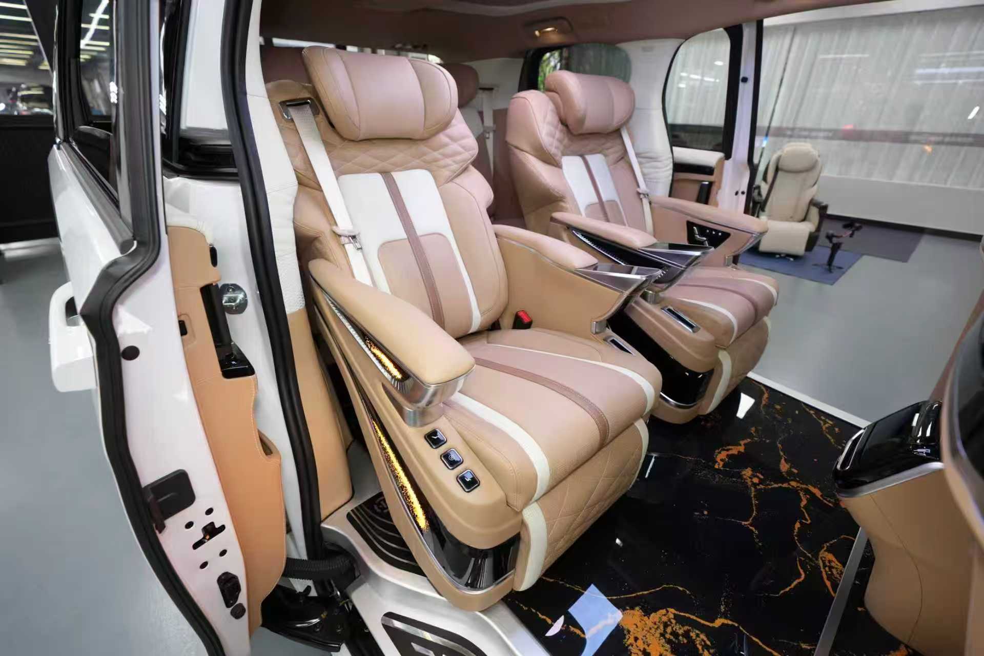 The name of this seat is: 22-inch seat, and the configuration of this seat:Physical switch control:six electricadiustments(Backrest front and rear/Cushiorfront and rear/Foot rest lifting:First levelleg support)ventilation/heating/massage/USB,type-C,table with wireless charge and cup holder。Optional features include electric headrests, rotation function, voice control, and secondary leg support.